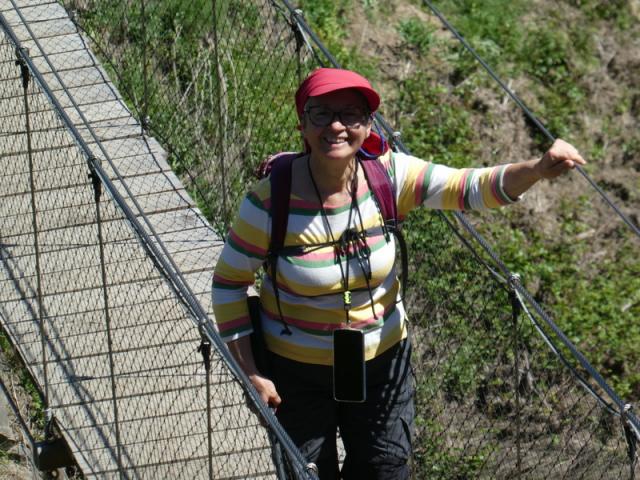 Após atravessarmos a ponte pedonal suspensa, sobre a ribeira de